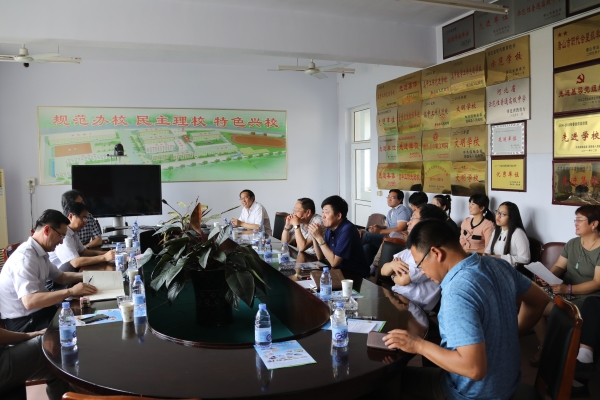 王英書記等人與灤南縣李有進副縣長、教育局張榮輝局長、曹秀坤副局長和實習學校吳瑞新校長、張紹光副校長等領導、教師,還有實習學生進行了交流、座談。