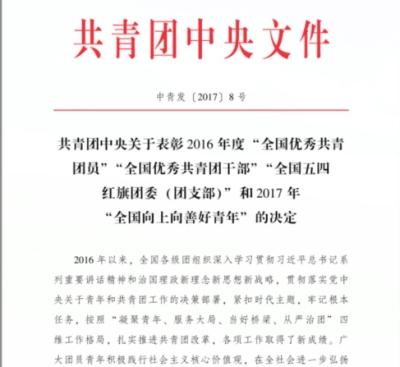 團中央根據(jù)《“全國優(yōu)秀共青團員”、“全國優(yōu)秀共青團干部”、“全國五四紅旗團委(團支部)”評選表彰辦法(試行)》(中青辦發(fā)〔201019號)的有關規(guī)定,于近日公布了“全國五四紅旗團委(團支部)”的評選結果,我校教育學院14級教育學團支部經(jīng)過差額評審,榮獲2016年度“全國五四紅旗團委(團支部)”稱號,這也是團中央授予基層團組織的最高榮譽。