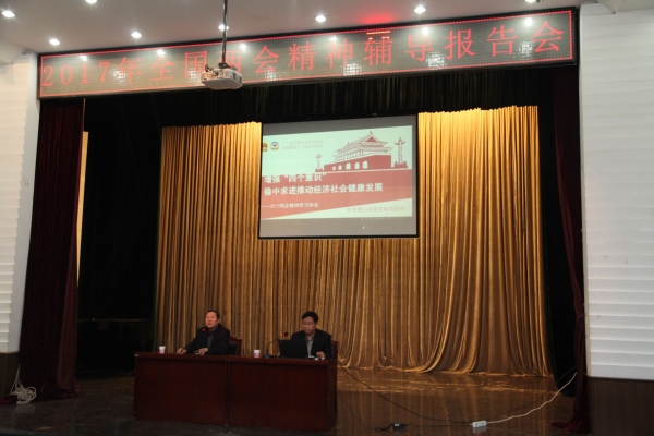 高民杰教授的輔導報告以《增強“四個意識”,穩中求進推動經濟社會健康發展》為題,結合自己的學習體會,從增強“四個意識”抓好各項工作、圖解2017年政府工作報告、全國兩會十大關鍵詞三個方面,對2017年全國兩會精神作了深入解讀。高教授概述了兩會召開的背景、2016年經濟社會發展目標的完成情況、2016年政府工作的主要成績及2017年政府工作的總體部署,講解了經濟增速、“三農”發展、區域戰略、創新引路、住房發展、民生福祉、供給側結構性改革、脫虛向實、強化環保、引領世界十個關鍵詞,強調只有增強政治意識、大局意識、核心意識、看齊意識,自覺在思想上政治上行動上同以習近平同志為核心的黨中央保持高度一致,才能使我們黨更加團結統一、堅強有力,始終成為中國特色社會主義事業的堅強領導核心,從而又好又快推動經濟社會發展。