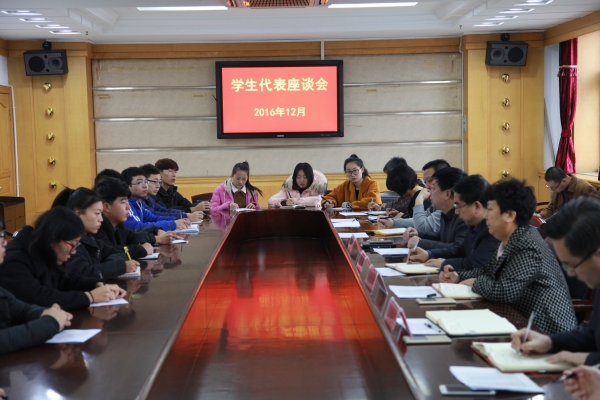 學校黨委于12月28日至30日,分別組織召開了離退休教職工代表民主黨派無黨派人士代表、教職工代表、學生代表座談會,廣泛征求各方面代表意見。黨委書記王英、院長杜彩芹、黨委副書記趙劍鋒、副院長閻滿富、副院長孫立軍、黨委常委邊宏廣參加座談會。