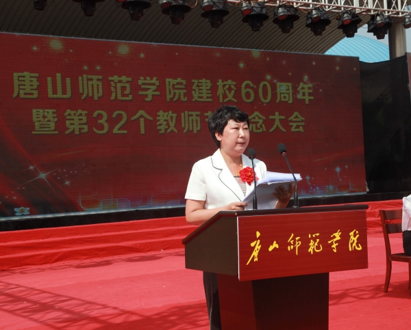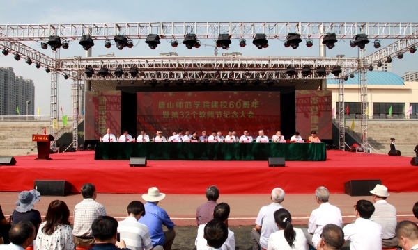 2016年9月10日,我校在大學(xué)道校區(qū)南院運(yùn)動(dòng)場(chǎng)隆重召開了唐山師范學(xué)院建校60周年暨第32個(gè)教師節(jié)紀(jì)念大會(huì),出席會(huì)議的領(lǐng)導(dǎo)有校黨委書記李衛(wèi)中,校長(zhǎng)杜彩芹,校黨委副書記趙劍鋒,副校長(zhǎng)閻滿富、孫立軍、客紹英,黨委常委、組織部長(zhǎng)邊宏廣。同時(shí),在主席臺(tái)就座的還有唐山師范學(xué)院原黨委書記、華北理工大學(xué)原黨委書記劉允正,唐山師范學(xué)院原校長(zhǎng)叢選忠、范永勝,原副校長(zhǎng)王士立、李海門、池作清,唐山師范學(xué)院原黨委書記董余瑞、張巨東,物理系原主任魏日升,唐山二中校長(zhǎng)張志軍,灤南一中校長(zhǎng)馮俊新,玉田一中校長(zhǎng)趙仁義,唐山八中副校長(zhǎng)馮國(guó)春,經(jīng)管系原主任邱珂,中文系楊立元教授,校學(xué)生會(huì)主席張廷廷。學(xué)校全體校領(lǐng)導(dǎo)、全體教職員工、全體2016級(jí)新生及各院系學(xué)生代表參加了會(huì)議。會(huì)議由李衛(wèi)中書記主持。