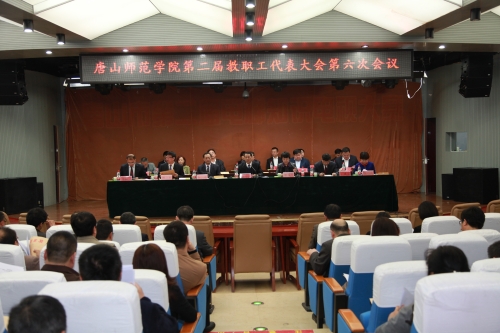 2016年4月21日下午,我校在會議中心隆重召開第二屆教職工代表大會第六次會議。黨委書記李衛(wèi)中,校長杜彩芹,黨委副書記趙劍鋒,副校長閻滿富、孫立軍、客紹英,黨委常委、組織部長邊宏廣出席了會議,8個代表團和列席代表參加了會議,會議由李衛(wèi)中書記主持。