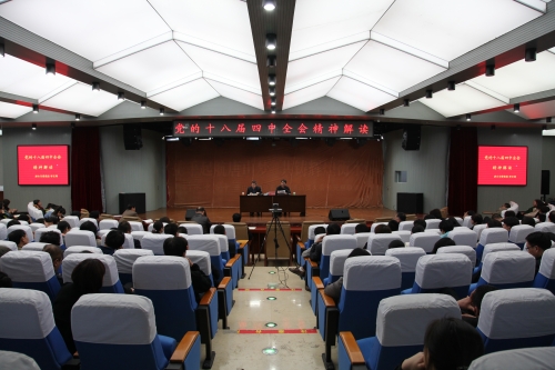 2015年4月14日下午,我校邀請唐山市委黨校副書記李文利教授,在會議中心舉辦了黨的十八屆四中全會精神解讀報告會。黨委書記李衛中、黨委副書記趙劍鋒、黨委常委邊宏廣出席了報告會。參加報告會的還有學校各部門領導和全體教師。報告會由黨委宣傳部部長李炳煥主持。