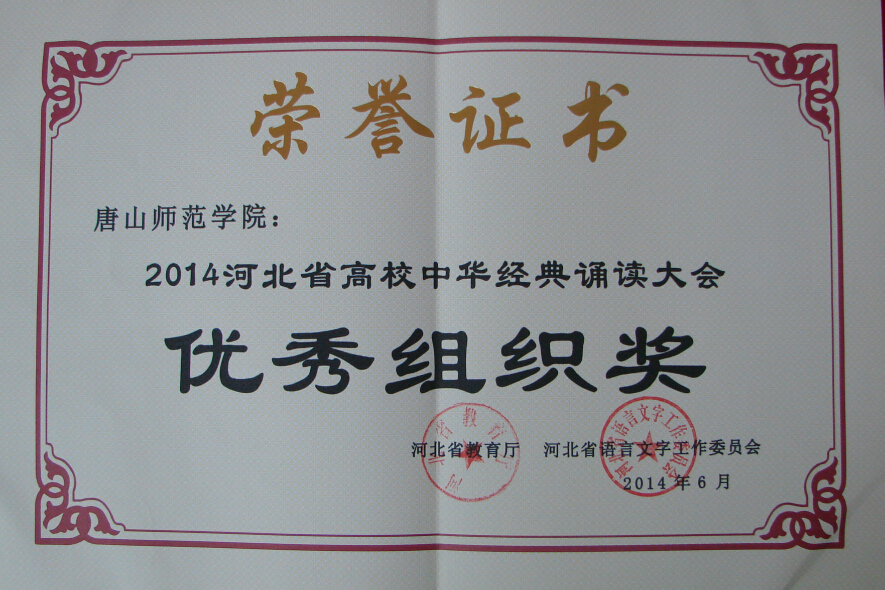 “2014河北省高校中華經典誦讀大會”在國家語委語言文字應用培訓基地—東北大學秦皇島分校圓滿落下帷幕,我校代表隊取得佳績。