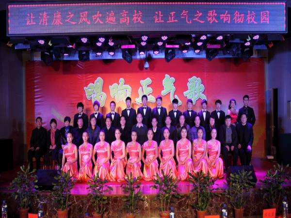 活動第二項是觀看由校紀委、團委主辦,校學生會、音樂系承辦,資源管理系協辦的以“唱響正氣歌”為主題的演出。演出開始前,我校黨委書記李衛中致辭,他說:開展廉潔文化活動是我黨黨風廉政建設的重要組成部分,是我校校園文化建設的一項重要內容。開展廉潔文化活動有利于營造學校風清氣正的育人環境,有利于培育優良的黨風、政風、教風和學風,有利于“三上、五滿意”辦學目標的勝利實現。并對全體師生提出“讓清廉之風吹遍高校,讓正氣之歌響徹校園!”的希望。整場演出通過歌曲、舞蹈、小品、詩朗誦等不同的藝術形式,充分展現了師院學子昂揚向上的精神風貌,也表達了“讓清廉之風吹遍高校,讓正氣之歌響徹校園”的美好愿望。晚會結束后,上級領導和學校領導與演員們親切握手并合影留念。