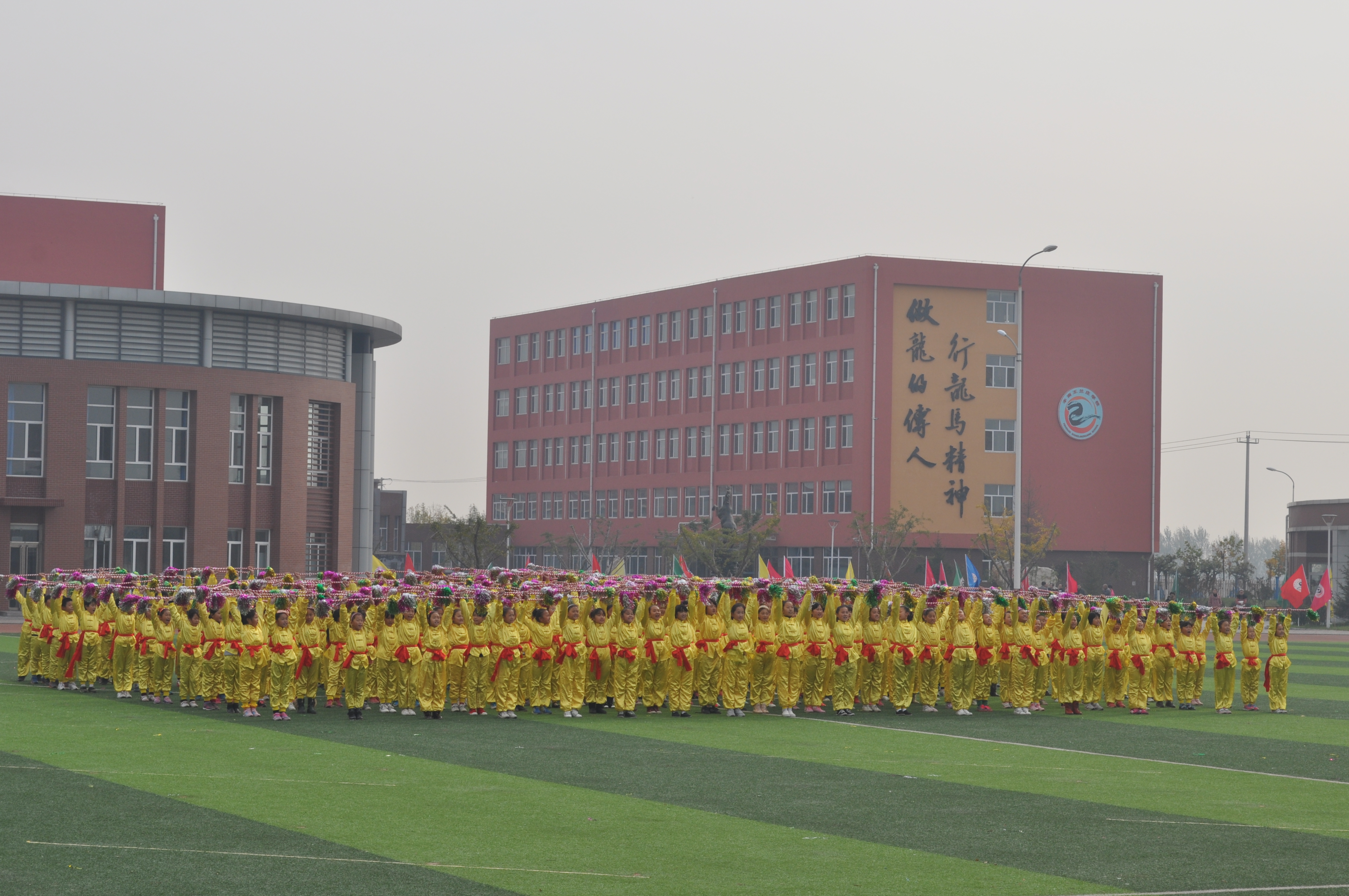 以“龍文化”為文化建設主題的王蘭莊學校,將“同舟共濟,自強不息”定為它的校訓。其“龍文化”的核心理念為:行龍馬精神,做龍的傳人。參會人員首先參觀的是位于教學樓前以長城為背景的奔馬浮雕。隨后,參會人員觀看了由全體學生表演的鞭舞“龍躍”。最后,在引導員的帶領下,考察隊伍參觀了教學樓,樓內處處充滿了龍文化的影子,讓參會人員切身感受到了龍文化的魅力。