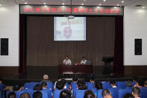 2013年8月27日、28日,我校在音樂樓報告廳舉辦了2013年暑期學生工作培訓班。培訓班特邀了河北省教育廳思政體衛處德育中心蔡杭州副主任和我校范永勝院長做專題講座。杜彩芹副院長出席了培訓班,各系黨總支書記、副書記、輔導員和學生處全體工作人會參加了培訓。培訓班邀請了學校辦公室、招生就業處、后勤處、保衛處、團委等職能處室負責人出席參加,由學生處孟祥昕處長主持。