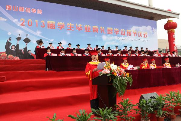 2013年6月20日,我校在操場隆重舉行2013屆學(xué)生畢業(yè)典禮暨學(xué)位授予儀式。出席畢業(yè)典禮的有黨委書記李衛(wèi)中,院長范永勝,黨委副書記趙劍鋒,副院長閻滿富、孫立軍、客紹英,紀(jì)委書記李可君。出席典禮的還有各院系領(lǐng)導(dǎo)和老師。典禮由杜彩芹副院長主持。
