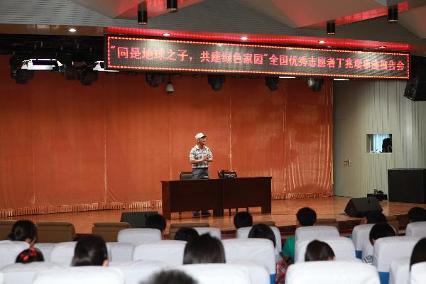 表彰大會結束后,被共青團省市委和媒體譽為“中國綠色宣言倡導人”、“地球之子”的丁兆瑞老師為我校師生作了一場以“如何做好身邊的環保”為主題的專題報告。號召當代大學生努力從身邊的小事做起,保護好我們的生存環境。他說,在他所做的一千多次演講中,親自關掉的燈,超過二十多萬盞,環保其實很簡單,就是一個簡單的舉動。演講中,他一直用科學的環保行為和理念帶動現場所有人員做力所能及的環保行為,博得了現場師生的陣陣掌聲。