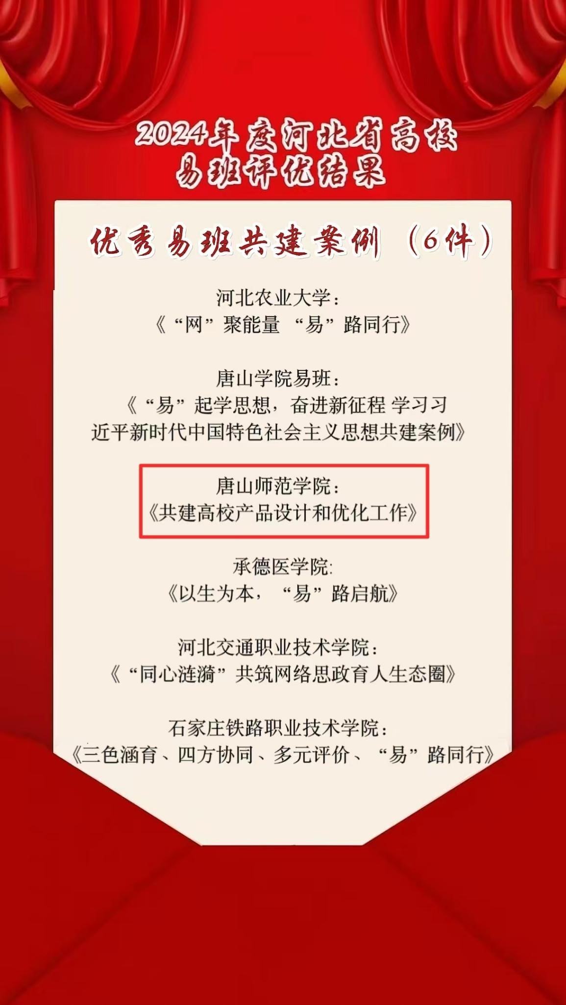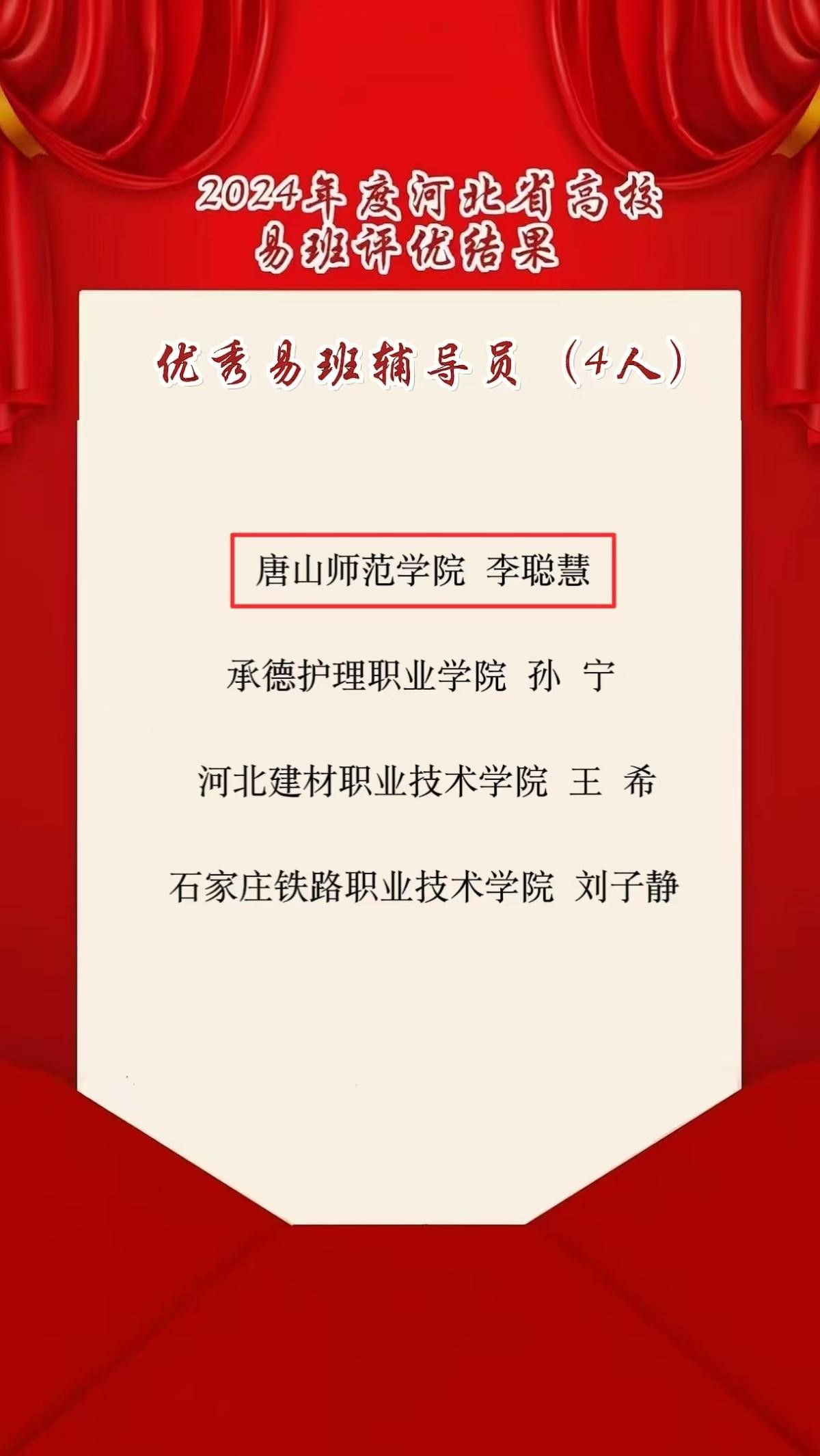 近日,河北省高校網絡思想政治工作中心公布了2024年度高校易班評優結果。經過評審,我校獲評“優秀易班優秀學生工作站”、優秀易班共建案例《共建高校產品設計和優化工作》,我校輔導員李聰慧也榮獲了易班優秀輔導員的稱號。