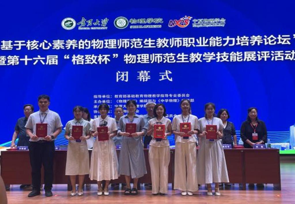 近日,由教育部基礎教育物理教學指導專業委員會指導,《物理教師》編輯部與《中學物理》編輯部主辦,寧夏大學承辦的“基于核心素養的物理師范生教師職業能力培養論壇”暨第十六屆“格致杯”物理師范生教學技能展示與交流活動圓滿落幕。物理科學與技術學院參賽團隊在此次活動中表現優異,共斬獲7項國家級榮譽,其中自制教具展評一等獎一項、二等獎兩項;物理教學技能展示一等獎一項、二等獎三項,成果豐碩。