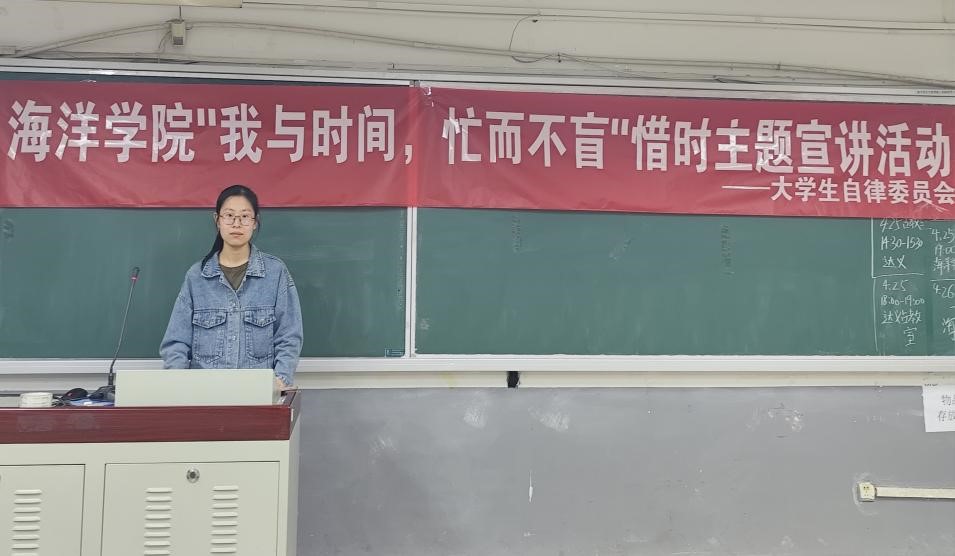 為引導大學生學習時間管理技巧,激勵學生培養自律精神,海洋學院于4月25日開展“我與時間,忙而不盲”惜時主題宣講活動。