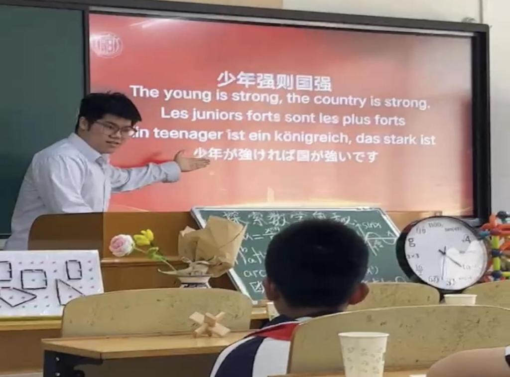 在游覽參觀后,外國語學院聯合數學與計算科學學院與小學生們共上了一堂精彩的“大中小思政課”,從“生活中無處不在的數學”和“少年強則國強”的多語種誦讀等方面,幫助小學生們建立數學思維,培養科學精神,堅定理想信念,樹立家國情懷。外國語學院領導班子對光新莊小學師生表示了熱烈的歡迎,并參與了部分活動。