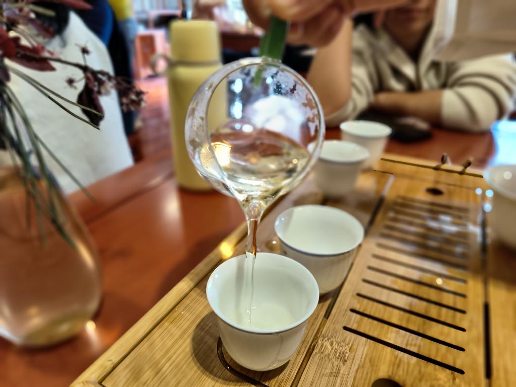 主講老師從茶文化的歷史流變出發,追溯了神農氏時代的藥用到食用,以及唐代煎茶、宋代點茶、明清瀹茶等不同歷史時期的演變過程。通過與學員一同重溫茶文化的傳播路徑,學習了六大茶類的分類與特點,強化了茶在中國文化中的重要位置。課堂中,學員們充分認識到茶文化與人文地理的關系,茶文化的流傳演變與地理環境的關系,了解了各類茶品所需的氣候、土壤等自然條件。在課堂上,主講老師示范了茶藝的行茶十式,并邀請學員們上臺親身體驗,掌握基本的泡茶技巧,感受茶藝文化的魅力。