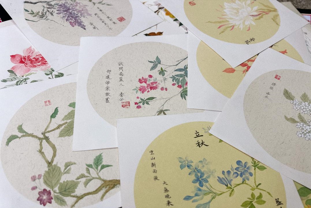 在比賽過程中,同學們紛紛組隊參與,以團隊協作的方式展開創作。大賽特別設置了美學和設計兩個賽道,為參賽者提供了更為廣闊的創作空間。在美學賽道中,參賽者以剪紙藝術、國畫白描、油畫、水彩等多樣化的繪畫手法,展現了二十四節氣中豐富多彩的自然景象和人文內涵。作品中,仕女圖的婉約之美、詩句的含蓄之意、篆刻藝術的古樸之風以及書法的流暢之韻,都得以淋漓盡致地表達;設計賽道則更加注重藝術與實用的結合。參賽者將傳統文化元素與現代設計理念相融合,創作出了一系列富有創意和實用性的設計作品。
