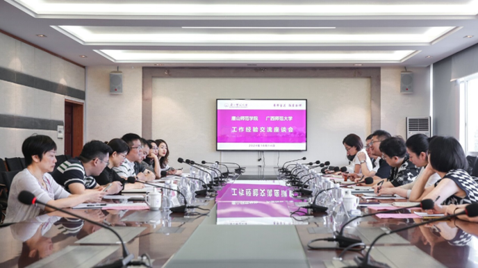10月14日,唐山師范學院教務處處長沈芝、財務處處長徐鐵紅、招生就業處處長李麗娜、學生處處長馬連營、現代教育技術中心主任楊玉娟、實驗管理中心主任康曉梅以及相關工作人員一行八人到廣西師范大學開展研學交流。交流期間,實地參觀了育才校區和雁山校區的多媒體教室、微格教室、智慧教室和實驗室等。廣西師范大學教師教學發展中心常務副主任黃令重點介紹了該校審核評估工作的基本情況和經驗做法,隨后雙方院校對應職能處室負責人就本科教育教學審核評估、教學管理、財務管理、學生管理、招生就業管理、教學資源管理、實驗室建設以及教師職業技能訓練中心建設方面的經驗做法分別進行了深度的交流,分享了各自的經驗和做法。