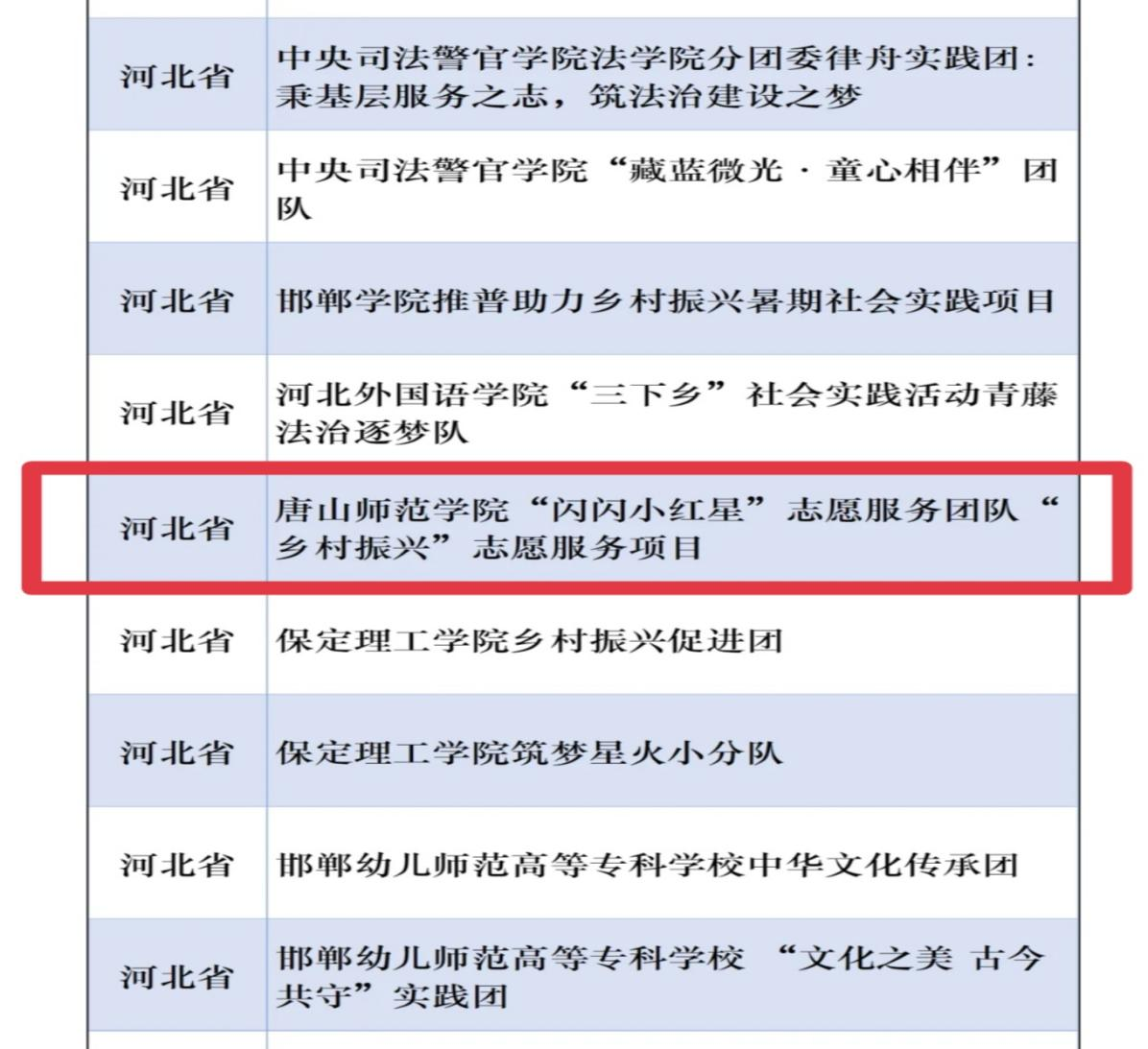 為鼓勵廣大青年學(xué)生在社會實踐中受教育、長才干、作貢獻,中國青年報社主辦了2024年大學(xué)生社會實踐“千校千項”網(wǎng)絡(luò)展示活動。自活動啟動以來,得到全國各地的青年學(xué)子積極響應(yīng),共收到作品3665份。最終經(jīng)過作品申報、資格篩選、展示點贊等環(huán)節(jié),遴選出1000項優(yōu)秀實踐項目,唐山師范學(xué)院“閃閃小紅星”志愿服務(wù)團隊“鄉(xiāng)村振興”志愿服務(wù)項目位列其中。這不僅是唐山高校中唯一成功入選的項目,更是“閃閃小紅星”志愿服務(wù)團隊繼入選全國大學(xué)生科技志愿服務(wù)示范團隊、全國“弘揚新時代雷鋒精神,投身新征程”志愿服務(wù)團、全國大學(xué)生“鄉(xiāng)村振興”志愿服務(wù)團后獲得的又一榮譽。