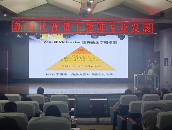 楊教授以經(jīng)典的單車實驗為開端給物理師范生開展“新時代背景下教師專業(yè)發(fā)展”專題講座。楊教授對中國基礎教育現(xiàn)狀進行了分析并指出目前教育面臨著諸多問題與挑戰(zhàn),對當今教師應具備的專業(yè)素養(yǎng)與精神提出了明確的方向,同時,闡述了教師專業(yè)發(fā)展的重要性。