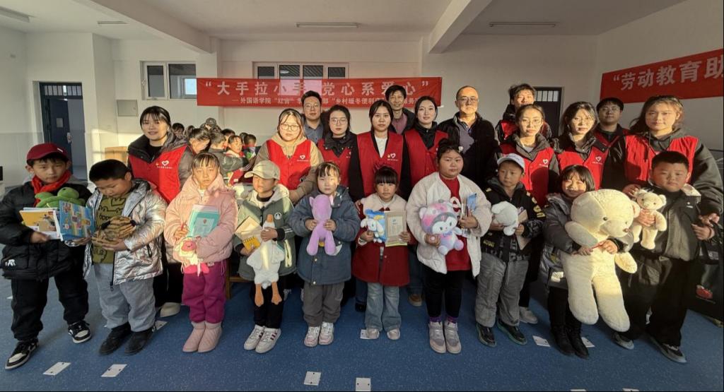 簽約儀式上,外國語學院教工黨支部開展了“奇妙的口語”和“有趣的禮儀”兩場外國語言與文化科普活動。教工黨支部趙鵬老師的科普講解生動有趣,贏得了光新莊小學全體師生的好評。外國語學院紅星領航團宣講團開展了以“沂蒙精神”和“遵義精神”為主題的紅色故事宣講活動,讓光新莊小學的小朋友們接受了一次紅色文化的洗禮。簽約儀式后,外國語學院教工黨支部、學生黨支部、及學生會聯合舉辦了“勞動教育助力,共筑鄉村振興夢”暖冬愛心便利店活動,為光新莊小學的孩子們捐贈了衣物、圖書、文具等學習生活用品。