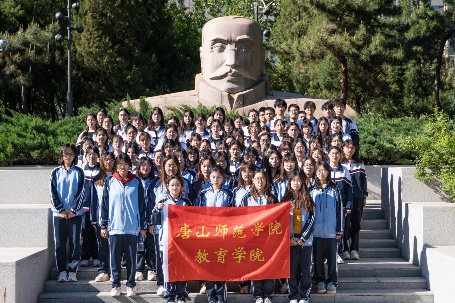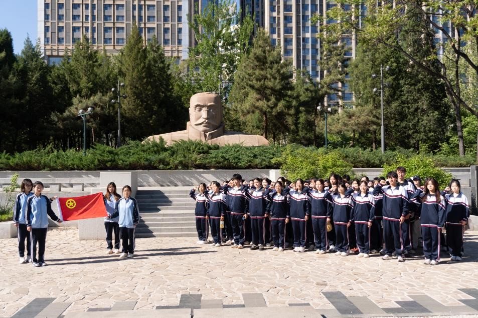 這場行走的思政課,既是對青年學子意志的錘煉,也是對紅色基因的深情追尋。李大釗先生作為中國共產主義運動的先驅,其雕像靜靜矗立在公園中央,仿佛在無聲訴說百年前“以青春之我創建青春之國家”的吶喊。教育學院以徒步形式抵達這一紅色地標,通過身體力行的實踐,讓當代青年在汗水與堅持中感悟歷史的厚重與使命的召喚。抵達終點后,全體團員肅立于李大釗雕像前,緊握右拳莊嚴宣誓,鏗鏘誓言、團旗在風中飄揚,讓歷史與現實在這一刻緊密相連。