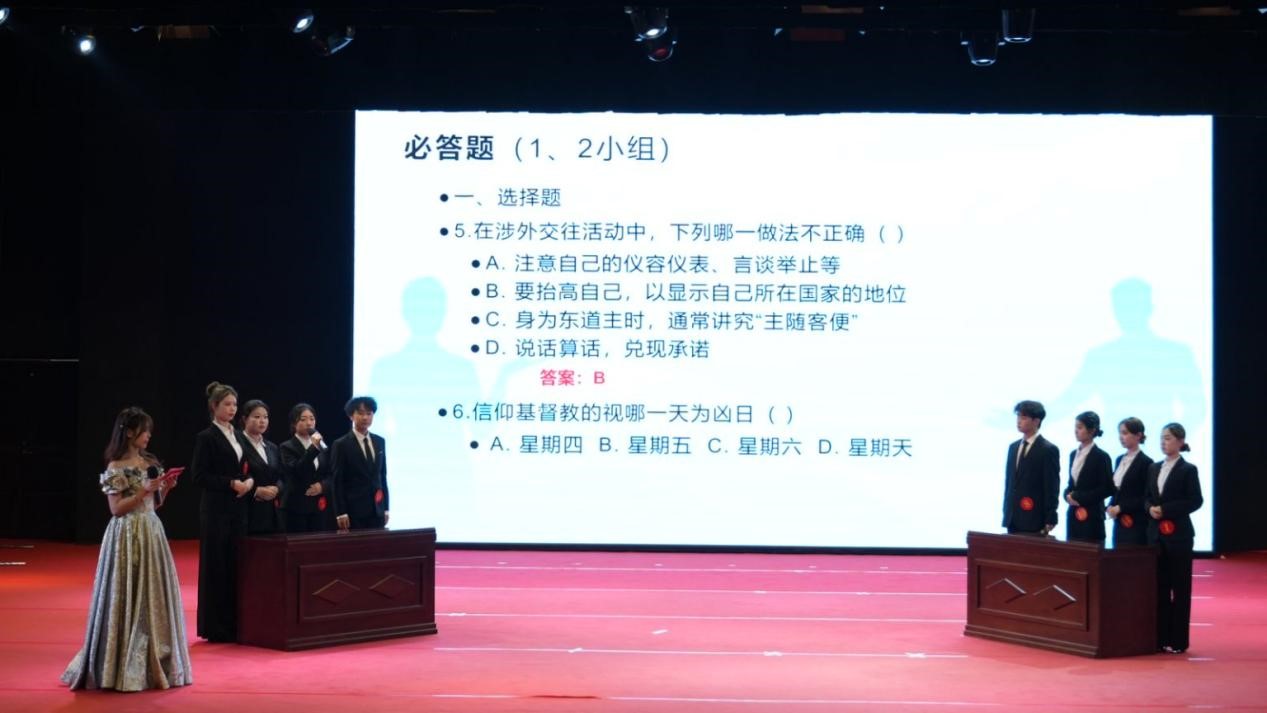 作為我校旅游管理專業實踐教學的核心平臺和應用型人才培養的品牌載體,大賽緊密對接文旅產業高質量發展需求,堅持“以賽促學、以賽促教、以賽促建、以賽促培”的核心理念。賽事深度融合專業課程標準與行業崗位規范,將職業素養、服務技能、禮儀規范等應用型能力要素轉化為可量化、可展示、可評價的競賽模塊,深度契合應用型轉型示范專業建設要求,通過以賽融教、以賽踐學的方式,推動課程體系與行業標準銜接、教學內容與實踐場景融合,有效推動課程體系與教學內容向“高階性、應用性、創新性”轉型,為示范專業建設提供實踐支撐,助力旅游管理專業打造應用型人才培養標桿。