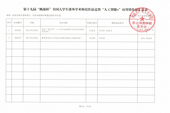 關于唐山師范學院第十九屆“挑戰杯” 全國大學生課外學術科技作品競賽“人工智能+”應用賽擬推薦項目的公示