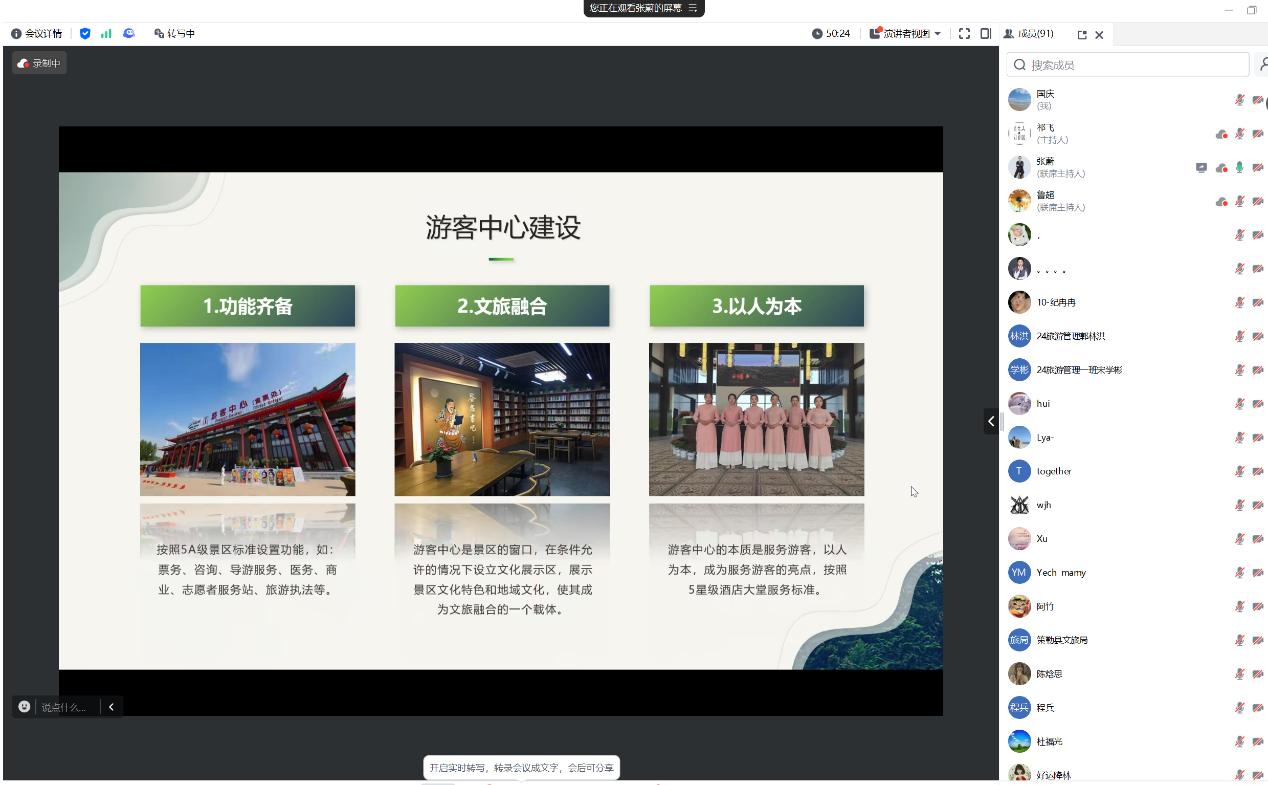 會(huì)議最后由李國(guó)慶進(jìn)行總結(jié),他表示張蔚為我們?cè)斀饬?/span>A級(jí)景區(qū)新舊標(biāo)準(zhǔn)的對(duì)比,特別強(qiáng)調(diào)了A級(jí)景區(qū)創(chuàng)建中區(qū)域平衡、主客共享和運(yùn)營(yíng)前置的問(wèn)題,并結(jié)合豐富的實(shí)踐經(jīng)驗(yàn)從六大硬件和六大軟件闡述了A級(jí)景區(qū)創(chuàng)建的核心內(nèi)容和重點(diǎn)任務(wù),對(duì)于旅游景區(qū)的創(chuàng)建發(fā)展具有明確的導(dǎo)向作用。他還表示未來(lái)將持續(xù)開(kāi)展虛擬教研室研討活動(dòng),搭建政校企合作交流平臺(tái),為旅游產(chǎn)業(yè)高質(zhì)量發(fā)展貢獻(xiàn)力量。