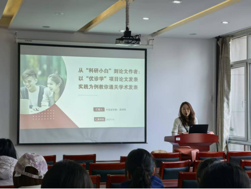 3月4日下午,我校“圖南講堂”系列學(xué)術(shù)講座活動在學(xué)術(shù)報告廳如期舉行。本期講座由外國語學(xué)院主辦,溫琪琪博士以“從‘科研小白’到論文作者:以‘優(yōu)診學(xué)’項目論文發(fā)表實踐為例教你通關(guān)學(xué)術(shù)發(fā)表”為主題,為全校師生帶來了一場兼具實踐性與前瞻性的學(xué)術(shù)分享會。