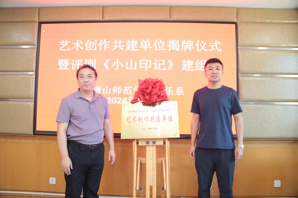 9月6日上午,唐山師范學院音樂系、唐山市藝術研究所藝術創作共建單位揭牌儀式暨評劇《小山印記》建組會在唐山師范學院大學道校區南院舉行。
