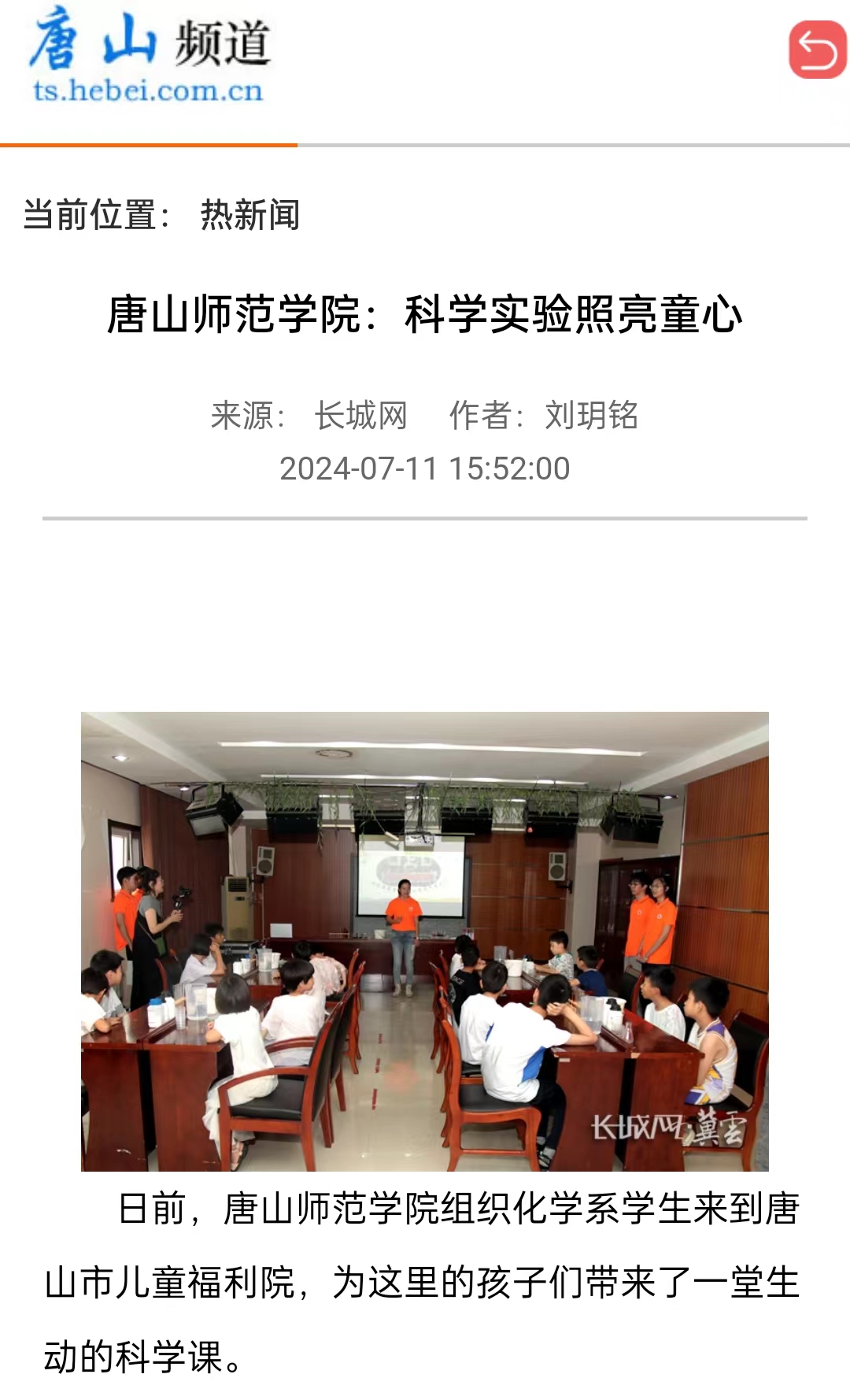 日前,唐山師范學(xué)院組織化學(xué)系學(xué)生來到唐山市兒童福利院,為這里的孩子們帶來了一堂生動(dòng)的科學(xué)課。