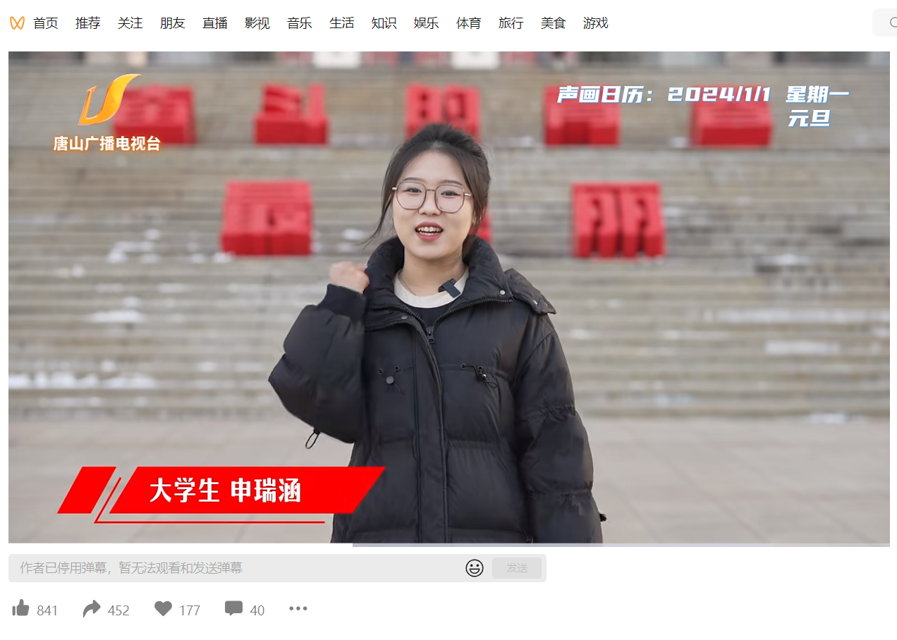 我校學子在唐山廣播電視臺為大家送新年祝福。