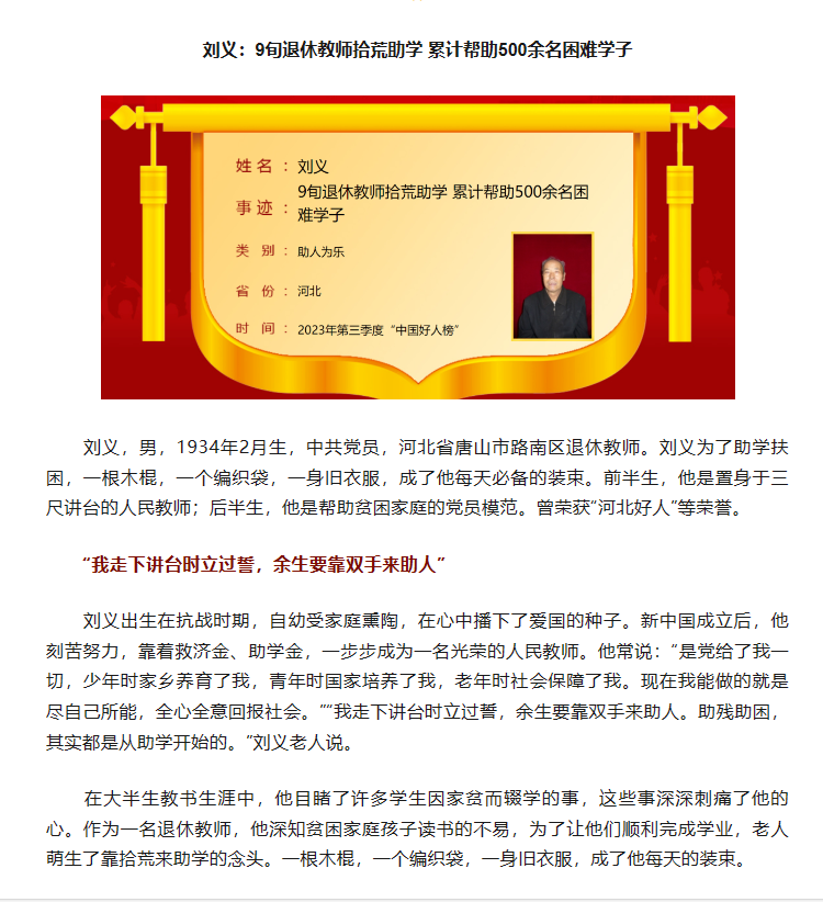 我校優秀校友——文學院退休教師楊立元老師。他撰寫的典型宣傳報道登上唐山勞動日報、文明河北公眾號等平臺。