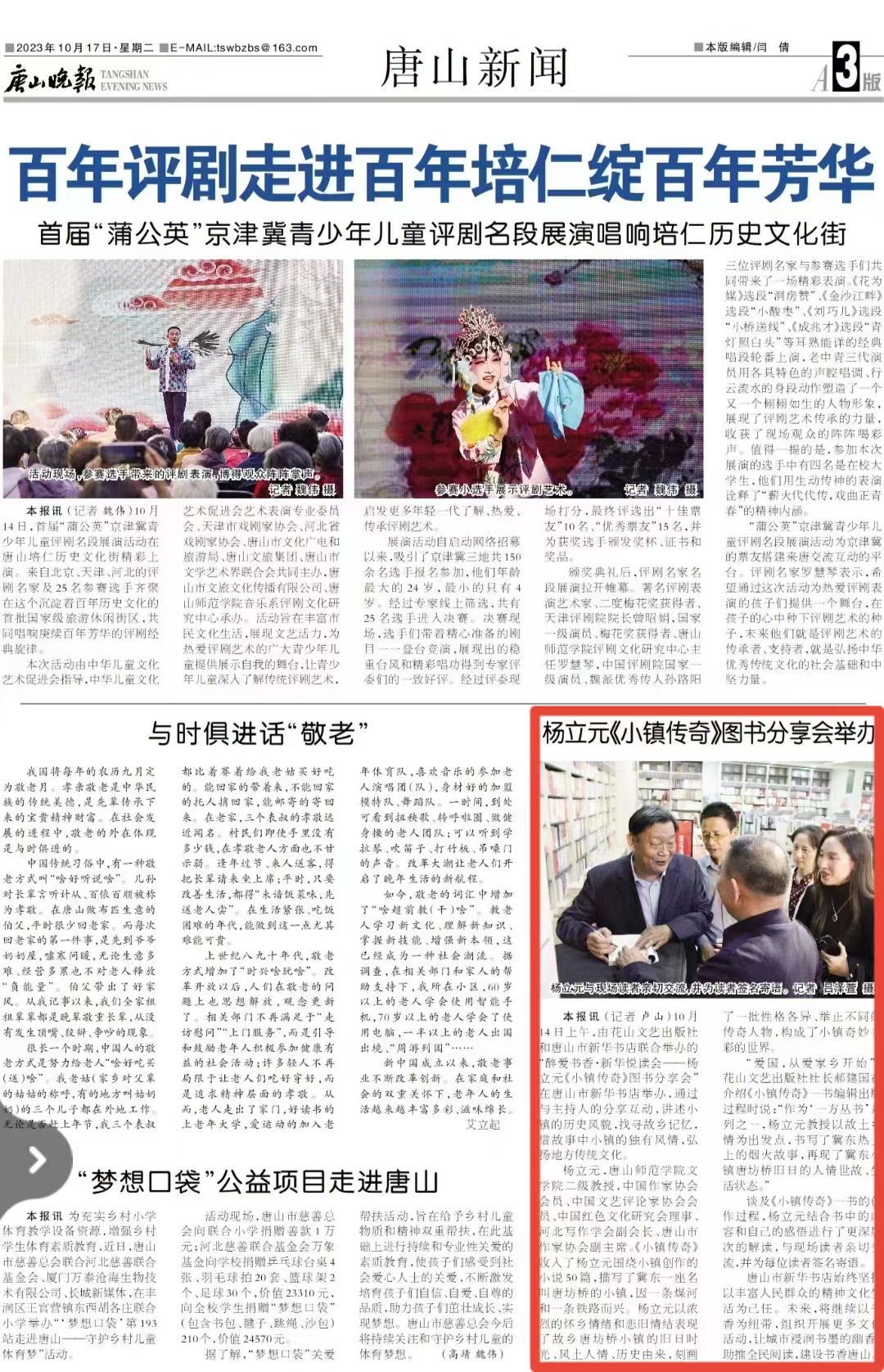 《唐山晚報》——楊立元《小鎮傳奇》圖書分享會舉辦