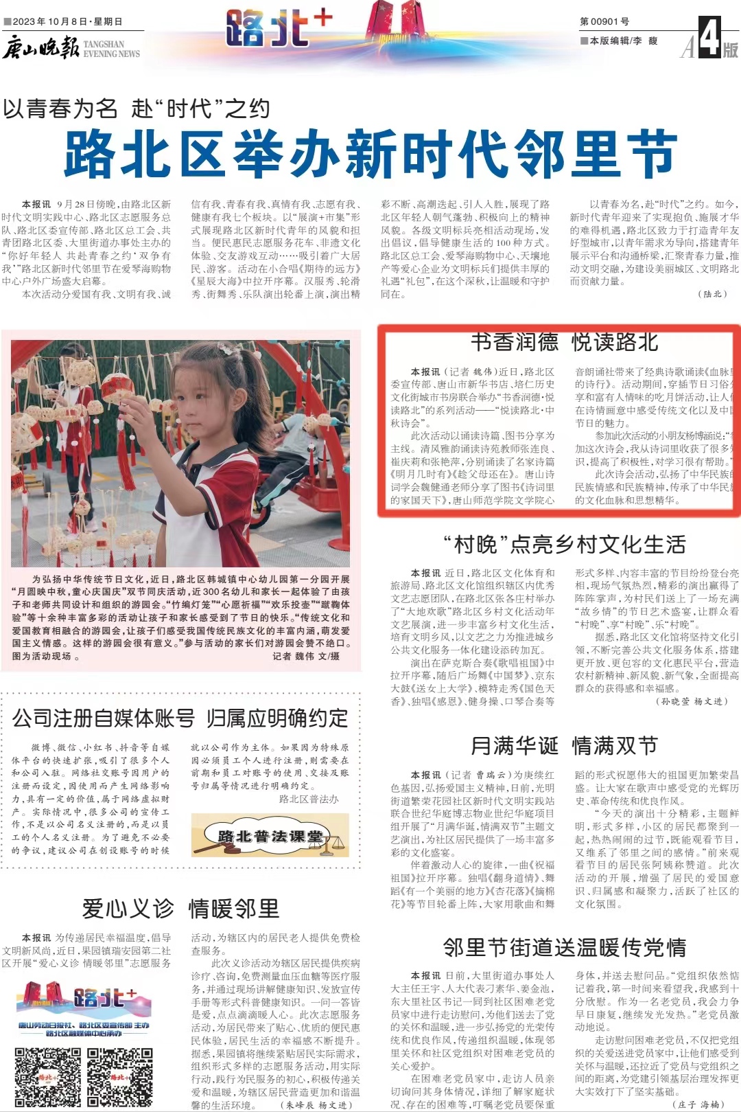 《唐山晚報》——書香潤德 悅讀路北