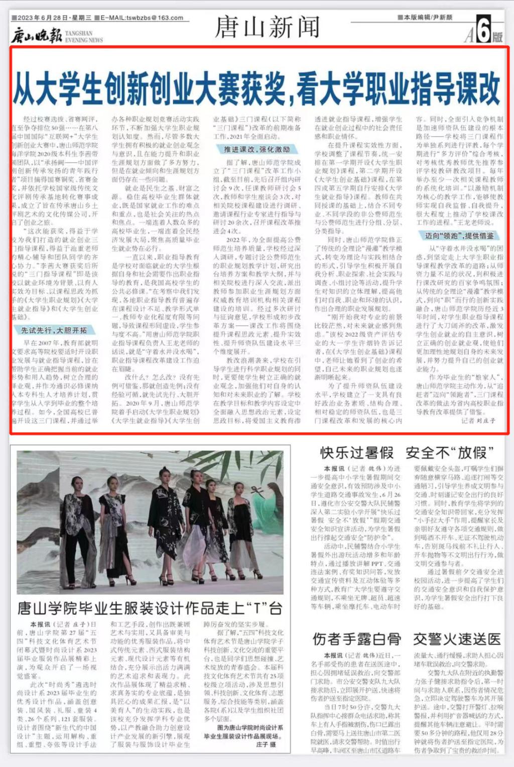 《唐山晚報》——從大學(xué)生創(chuàng)新創(chuàng)業(yè)大賽獲獎,看大學(xué)職業(yè)指導(dǎo)課改