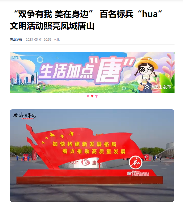 5月1日上午,“‘雙爭’有我 美在身邊”——唐山市百名標兵“Hua”文明大型活動在唐山開平花海舉辦。