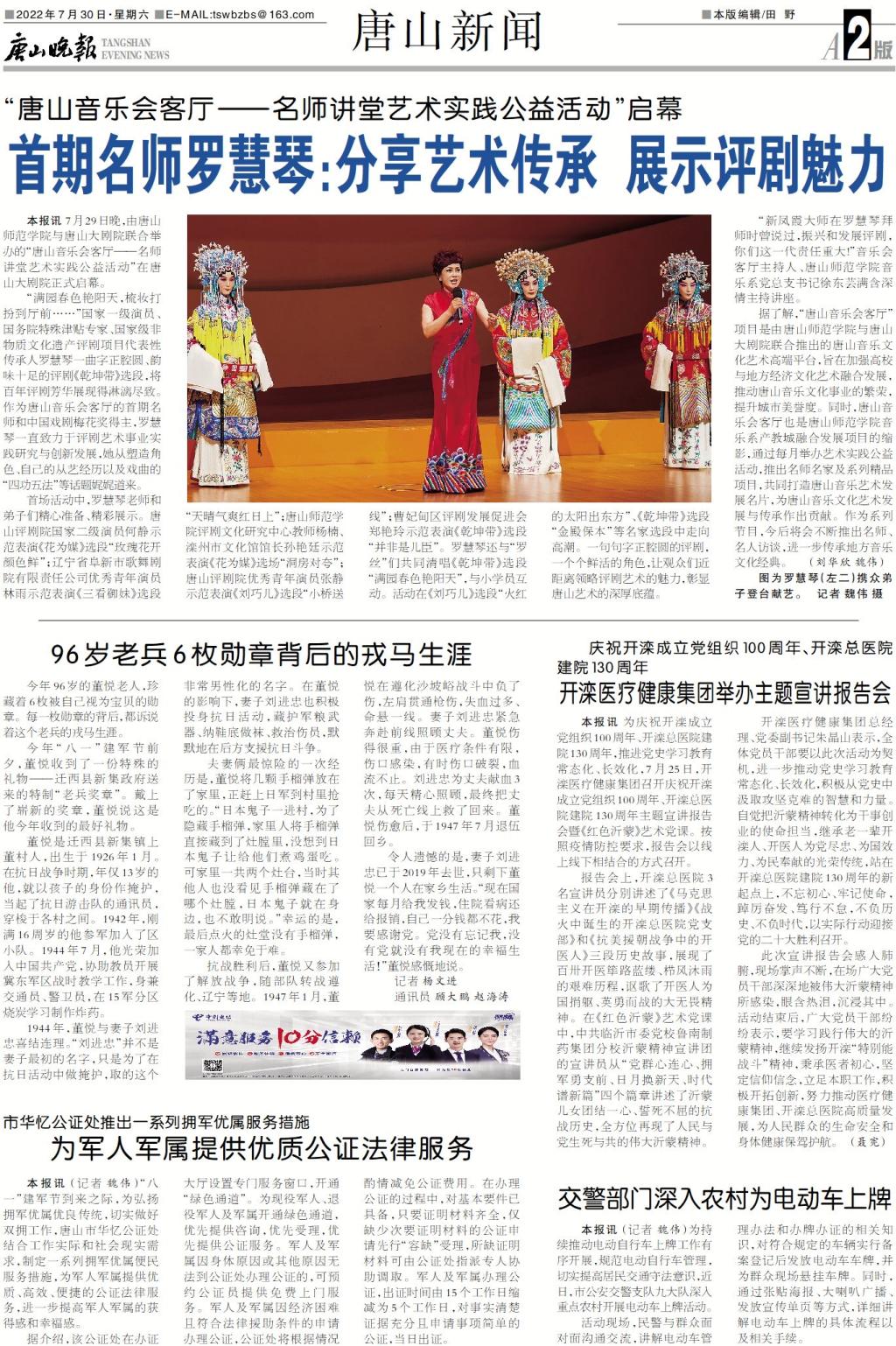 《唐山晚報》——唐山名師講堂藝術實踐公益活動啟幕!首期名師羅慧琴:分享藝術傳承 展示評劇魅力