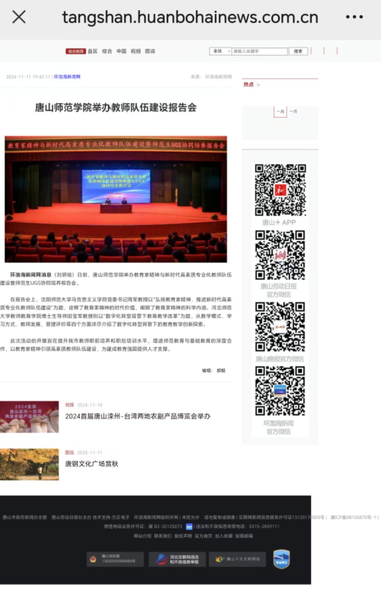 日前,唐山師范學(xué)院舉辦教育家精神與新時(shí)代高素質(zhì)專業(yè)化教師隊(duì)伍建設(shè)暨師范生UGS協(xié)同培養(yǎng)報(bào)告會(huì)。