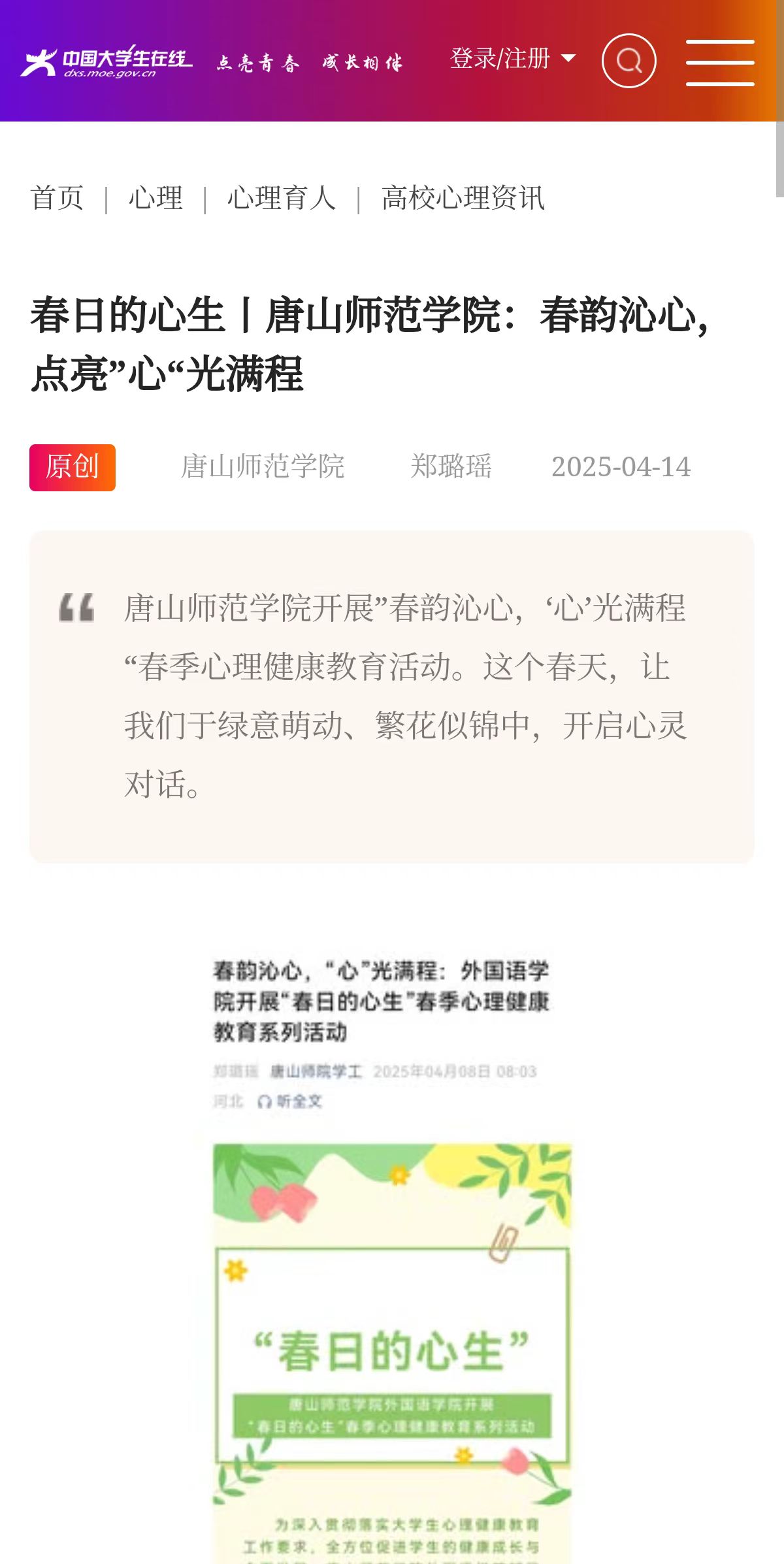 《中國大學生在線》——唐山師范學院開展春季心理健康教育系列活動