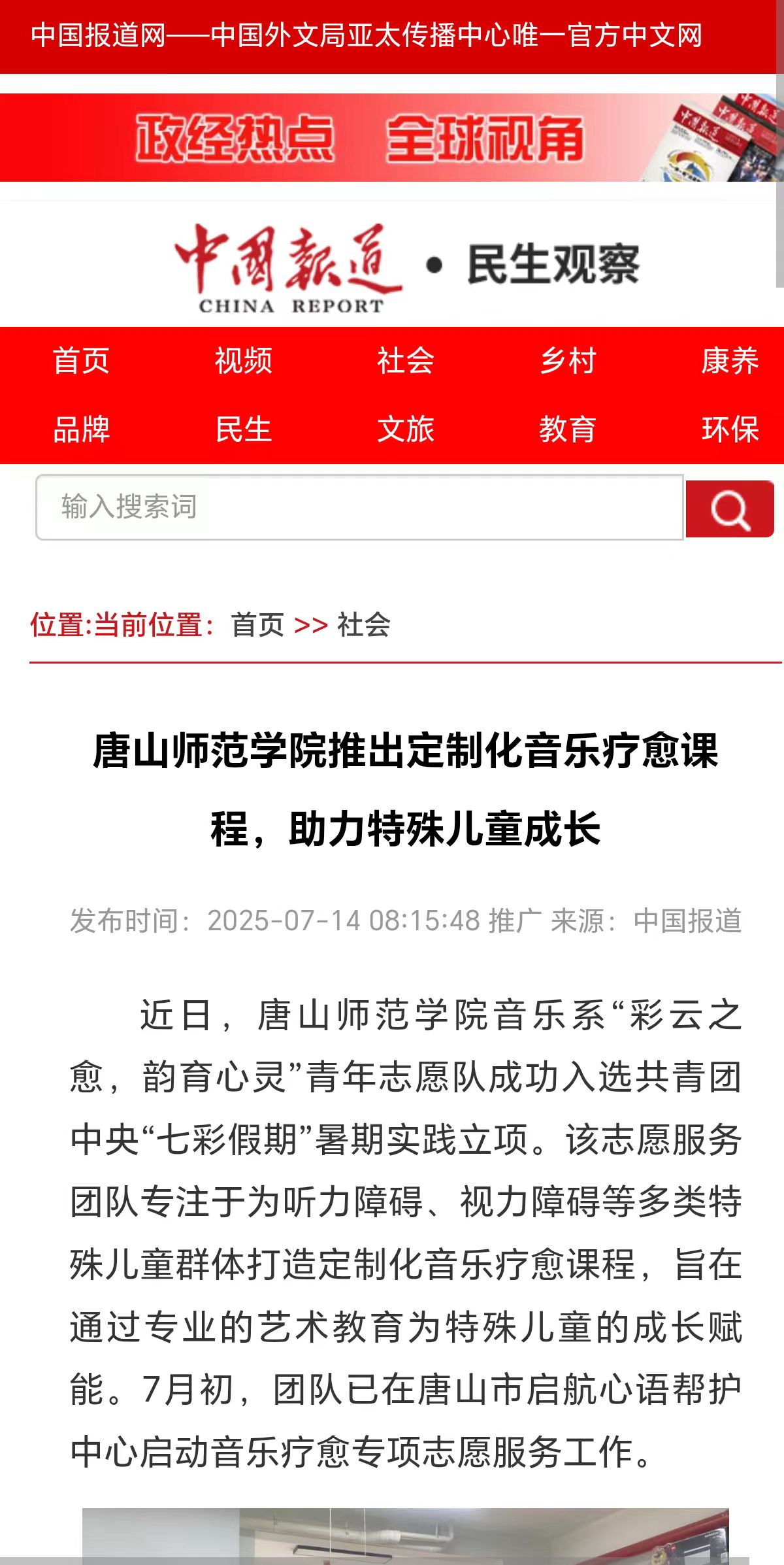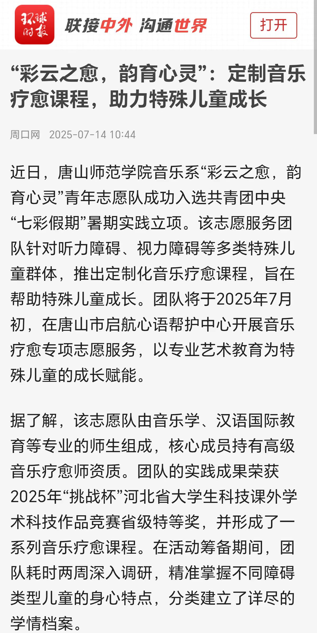 《環球網》《中國報道》《中國城市網》《中華網》《中國教育新聞網》《周口網》《中教網》——唐山師范學院推出定制化音樂療愈課程,助力特殊兒童成長
