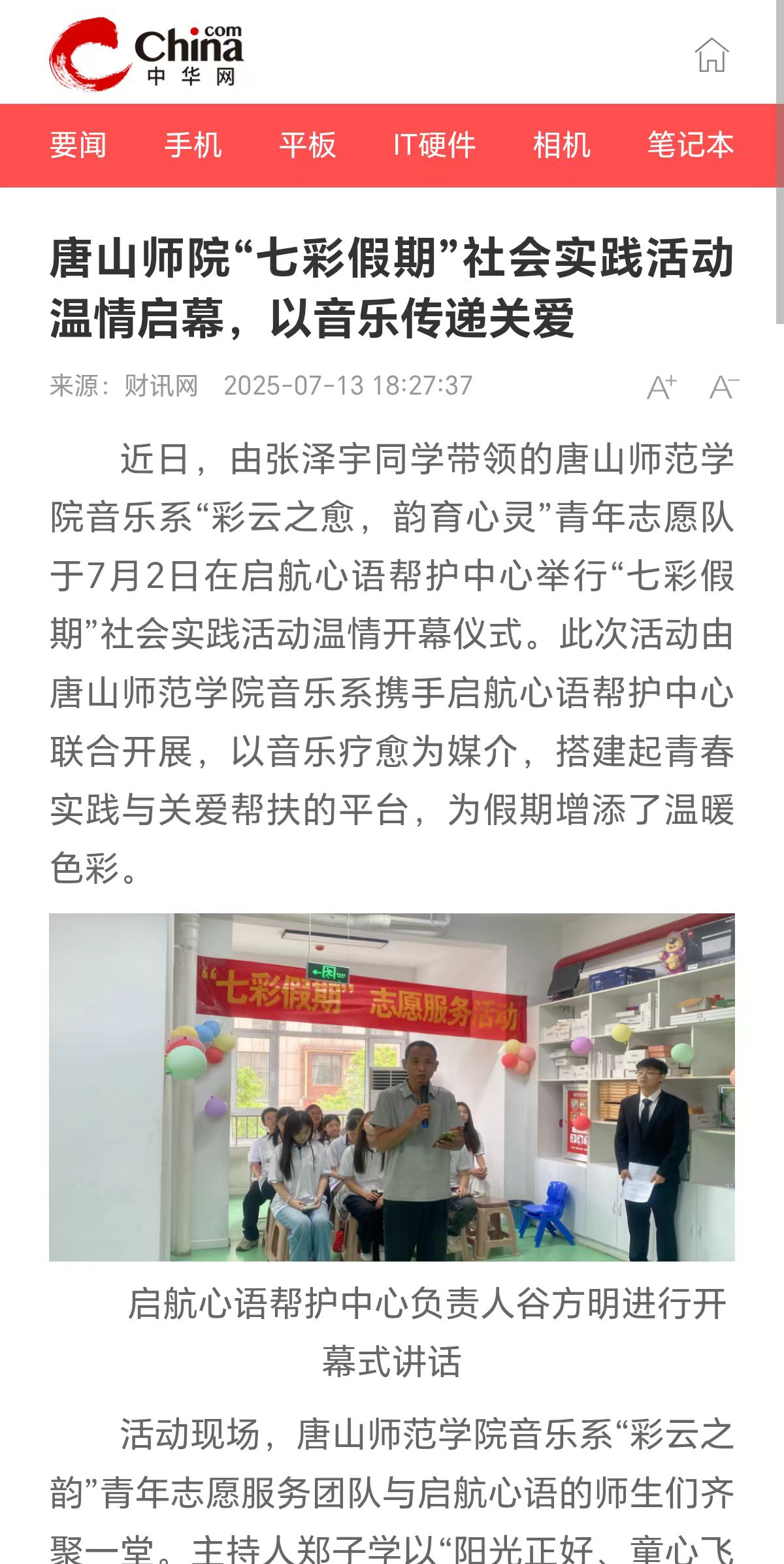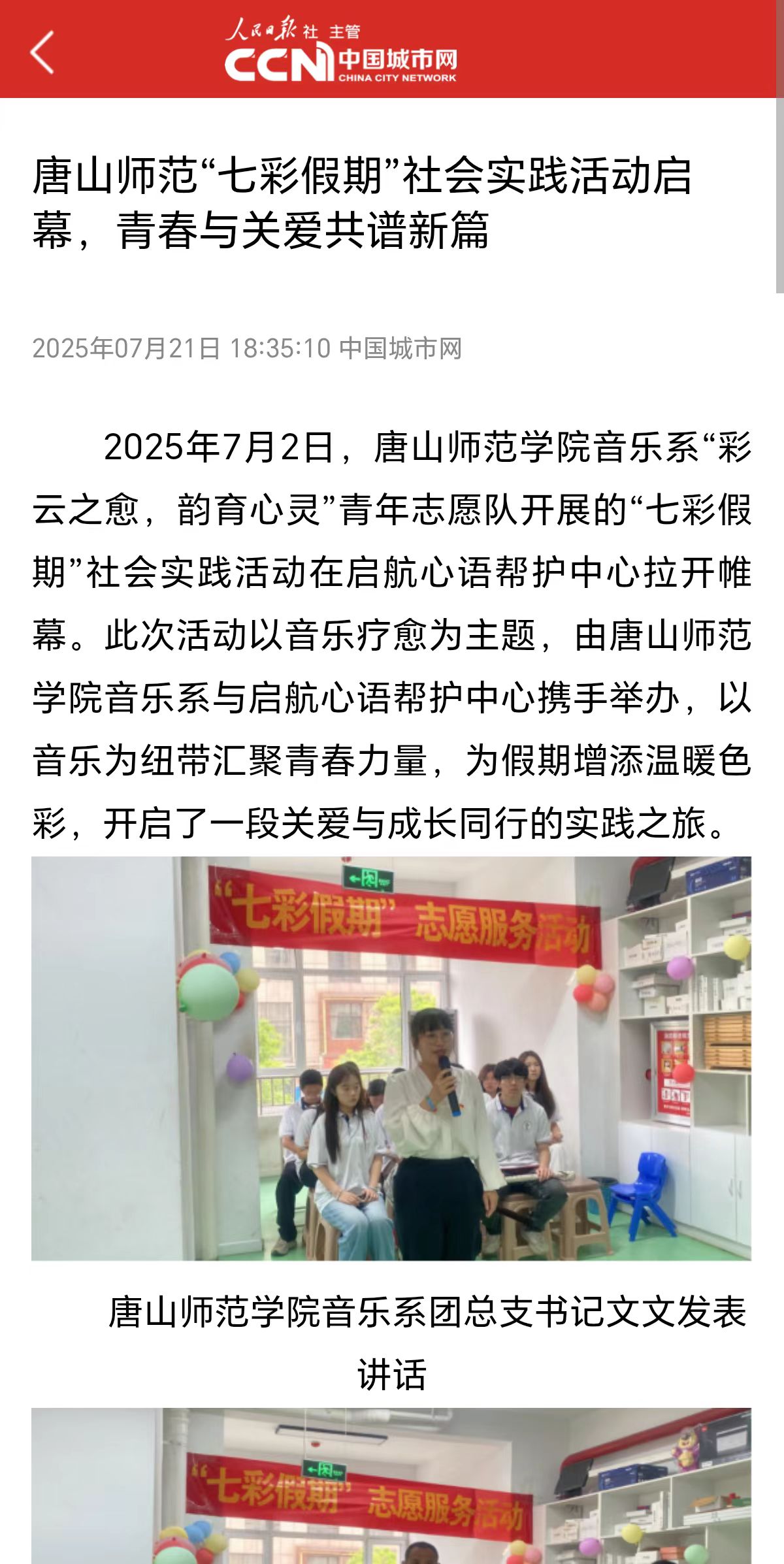 唐山師范學院音樂系“彩云之愈,韻育心靈”青年志愿隊成功入選共青團中央“七彩假期”暑期實踐立項。