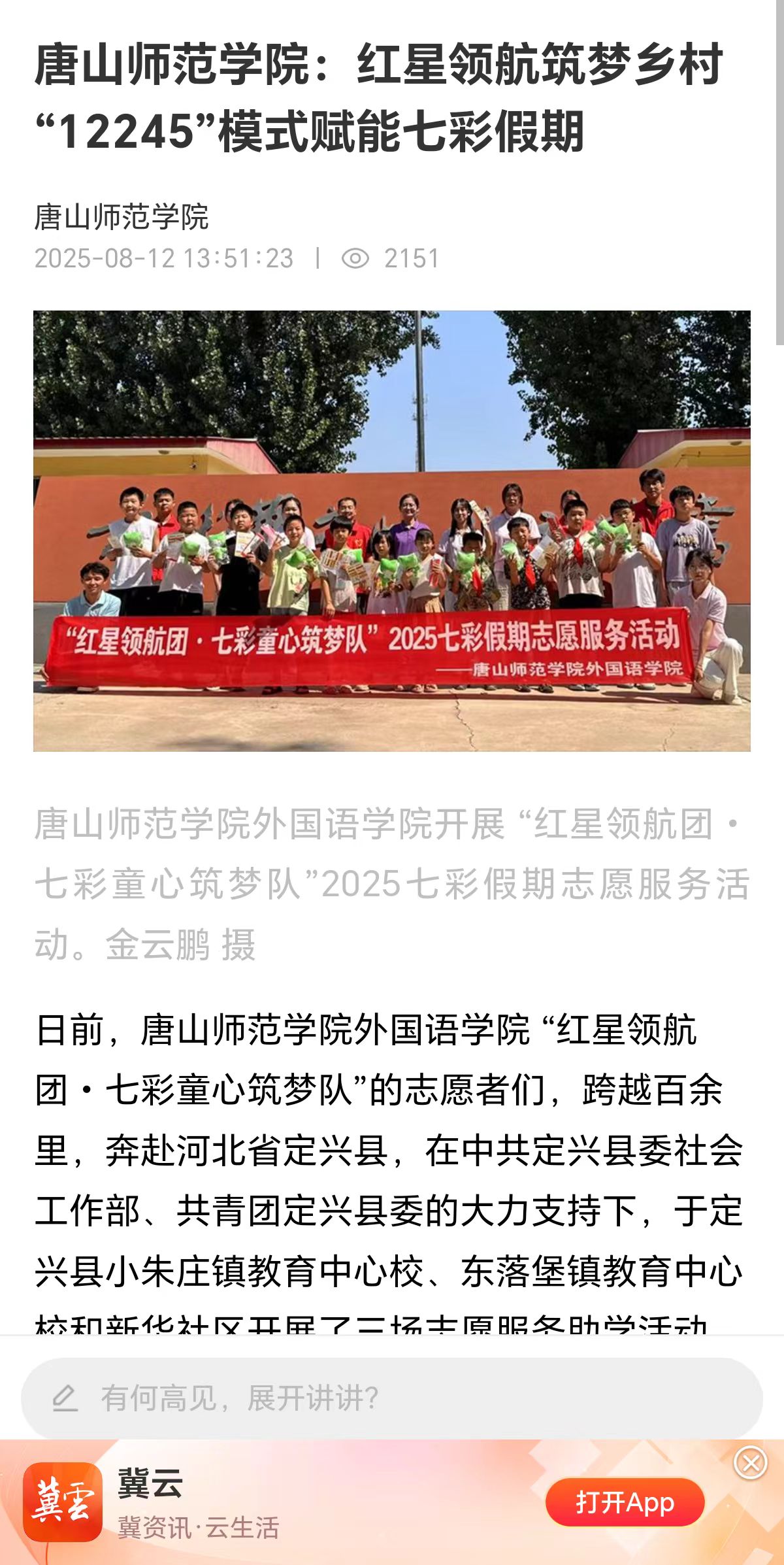 《央廣網》《中國新聞網》《長城網》《冀云》——唐山師范學院:紅星領航筑夢鄉村“12245”模式賦能七彩假期